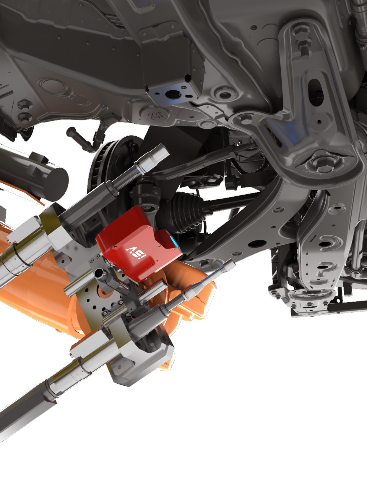 視覺引導(dǎo)機(jī)器人進(jìn)行底盤螺栓擰緊,基于3D視覺技術(shù),對(duì)螺栓及螺母定位,引導(dǎo)機(jī)器人實(shí)現(xiàn)后續(xù)螺栓擰緊,解決由于車身到位誤差和輪轂轉(zhuǎn)動(dòng)引起的偏差問題,保證螺栓擰緊精度。