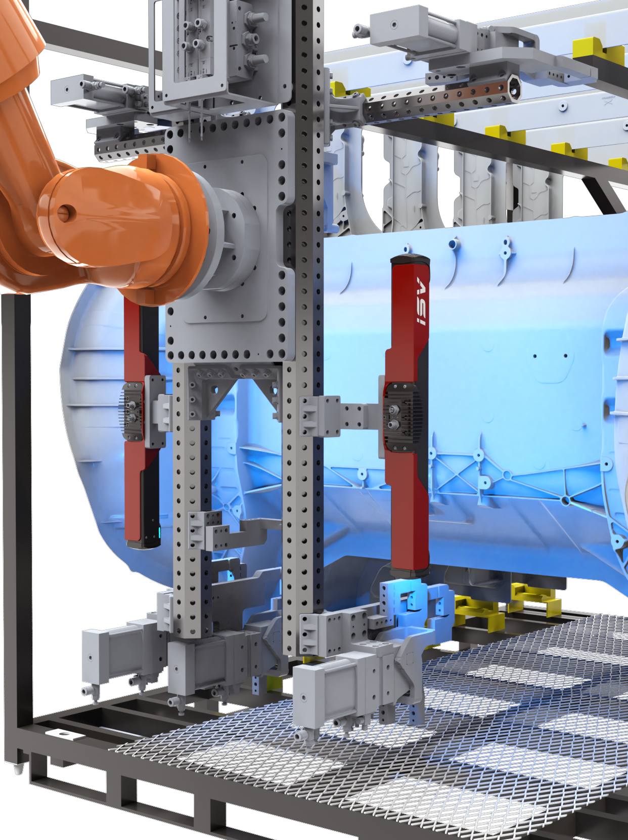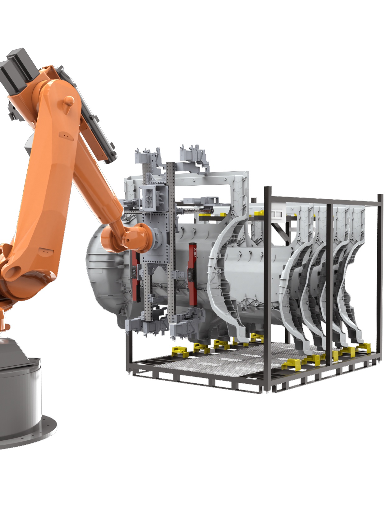 側(cè)圍、頂蓋等料架擺放零件搬運(yùn)場(chǎng)景;